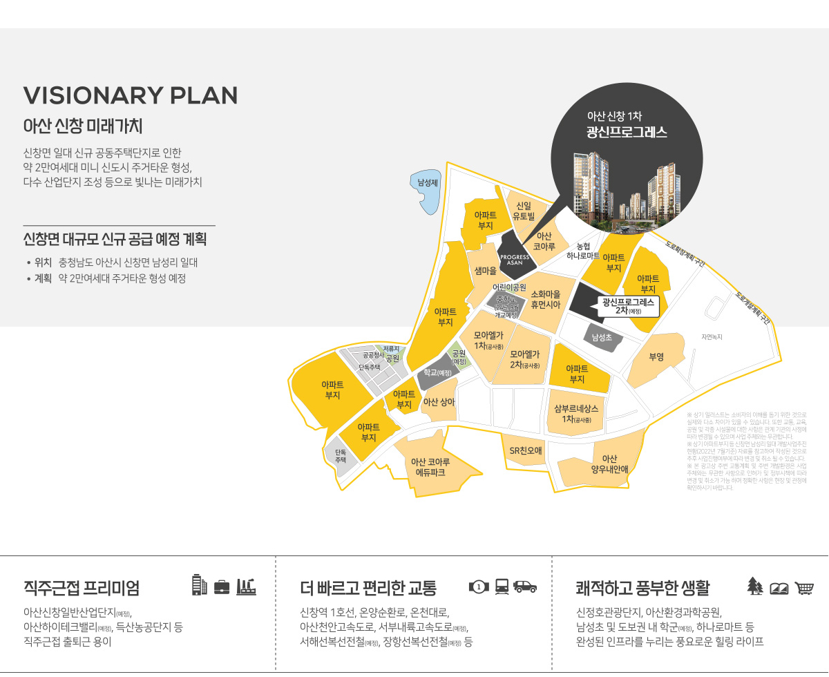 - ※상기 아파트부지 등 신창면 남성리 일대 개발사업추진 현황(2022년 7월기준) 자료를 참고하여 작성된 것으로 추후 사업진행여부에 따라 변경 및 취소 될 수 있습니다.